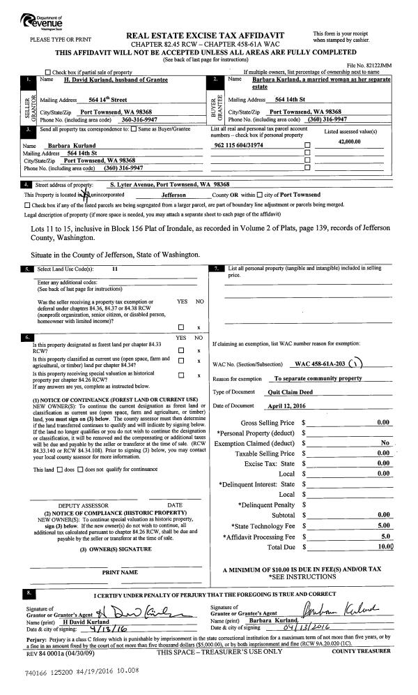 | Mailing Address: | 919 W SIMS WAY PORT TOWNSEND, WA 98368-3052 | % Ownership: | 100.0000000000% |