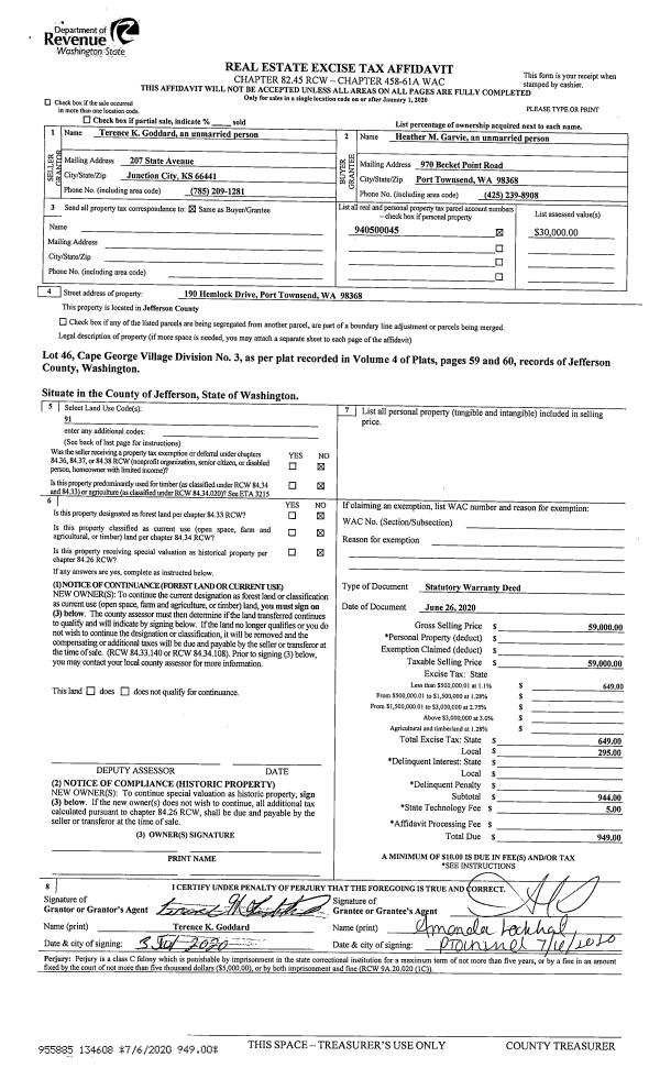 | 2 | 06/12/2020 | SWD | Statutory Warranty Deed | MICHAEL J ANDERSON | JEFFERY D MATHER & SUSAN J STONE | | | $564,000.00 | 134565 | |