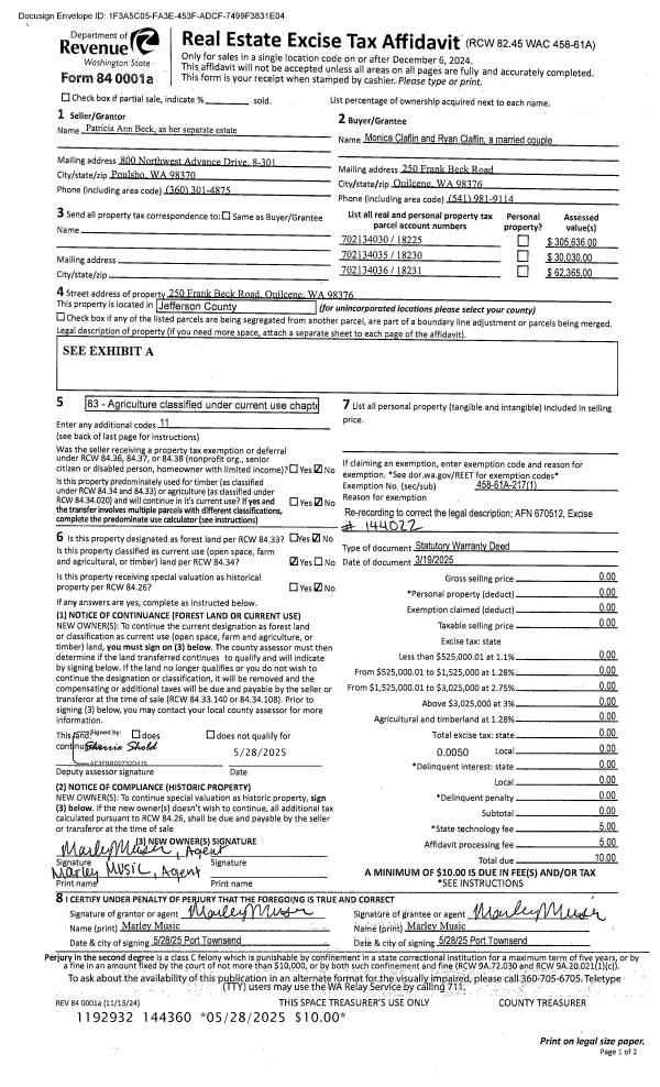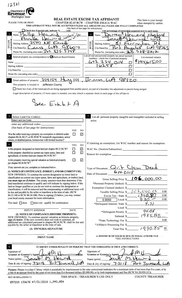 | Mailing Address: | JEFFREY R BRANTLEY 700 BECKETT POINT RD PORT TOWNSEND, WA 98368-9027 | % Ownership: | 100.0000000000% |