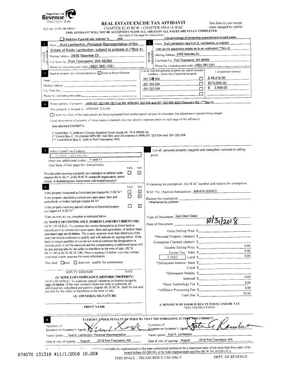 | Mailing Address: | 40 COMBS ST PORT TOWNSEND, WA 98368-8922 | % Ownership: | 100.0000000000% |