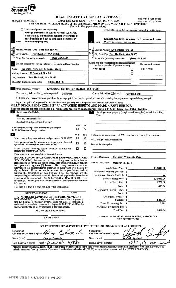 | Mailing Address: | 326 THOMAS ST PORT TOWNSEND, WA 98368-2214 | % Ownership: | 100.0000000000% |