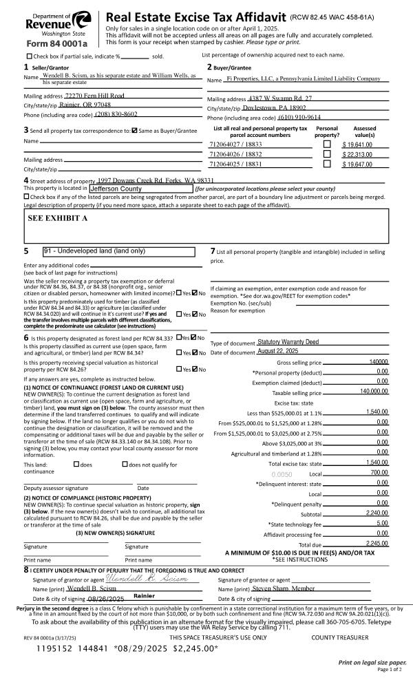 | Mailing Address: | 130 HANCOCK ST PORT TOWNSEND, WA 98368-3013 | % Ownership: | 100.0000000000% |