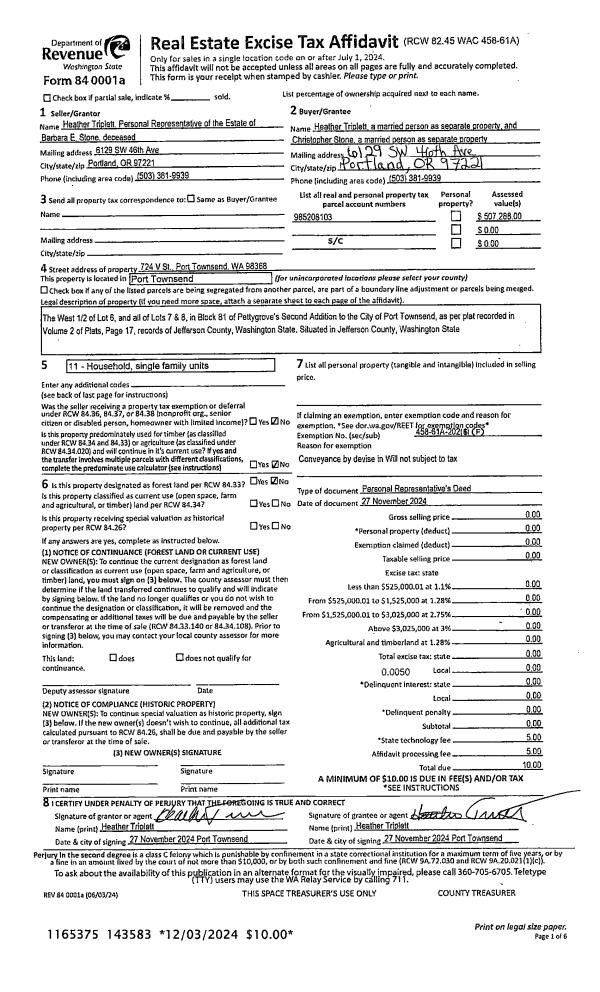 | Mailing Address: | 130 GRANT ST PORT TOWNSEND, WA 98368-3010 | % Ownership: | 100.0000000000% |