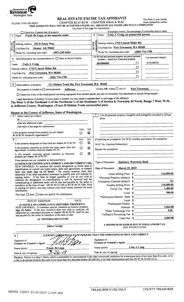 | Mailing Address: | 119 GRANT ST PORT TOWNSEND, WA 98368-3034 | % Ownership: | 100.0000000000% |