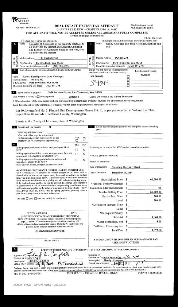 | Mailing Address: | 2108 6TH ST PORT TOWNSEND, WA 98368-2241 | % Ownership: | 100.0000000000% |