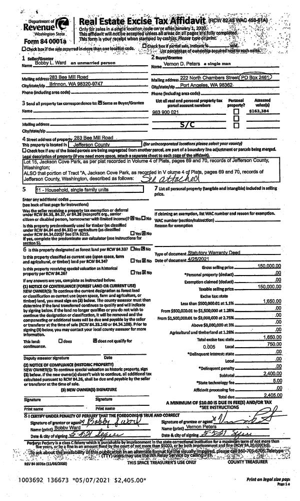 | 5 | 10/27/2015 | SWD | Statutory Warranty Deed | JOHN M METKE | HABITAT FOR HUMANITY OF EAST | | | $62,000.00 | 124281 | |