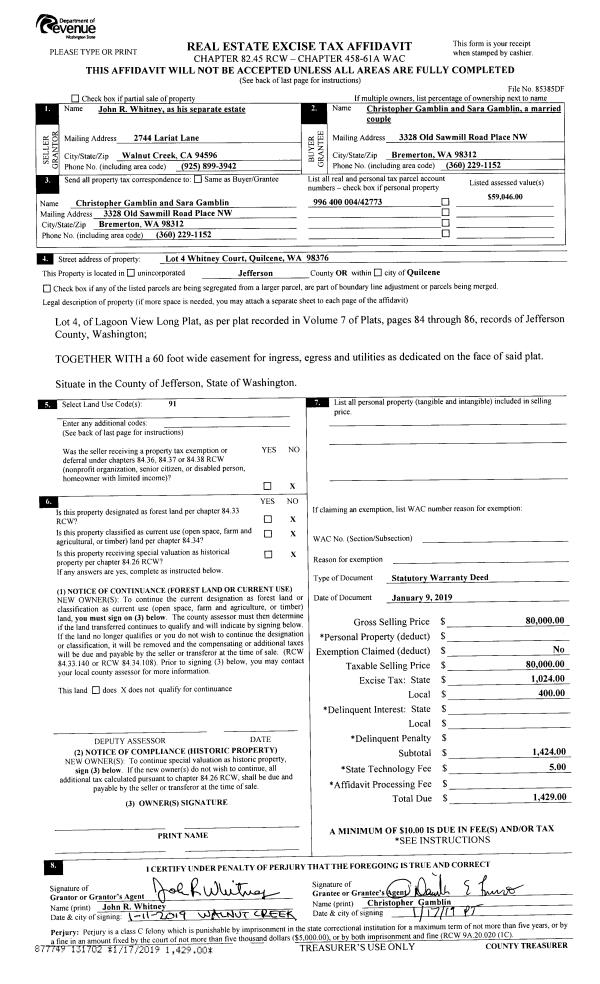 | Mailing Address: | THOMAS L & JULIE H VANCE TRUSTEES 2227 BELLEVUE WAY NE PMB 438 BELLEVUE, WA 98004-5721 | % Ownership: | 100.0000000000% |