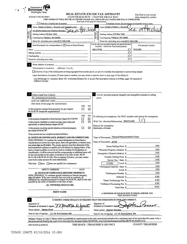 | 3 | 09/18/2020 | SWD | Statutory Warranty Deed | JANINE E BOLLING | DEBRA SILVA | | | $75,000.00 | 135182 | |
