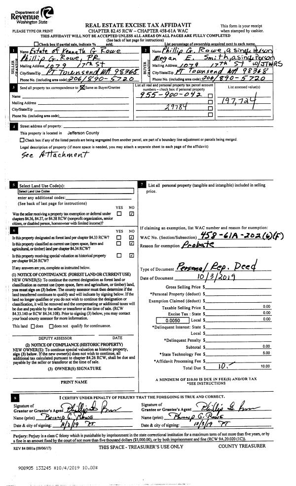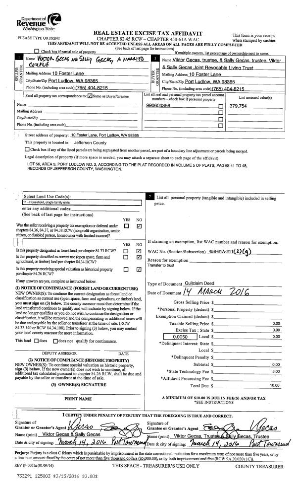 | Mailing Address: | 25 HENDRICKS ST PORT TOWSEND, WA 98368-2362 | % Ownership: | 100.0000000000% |
