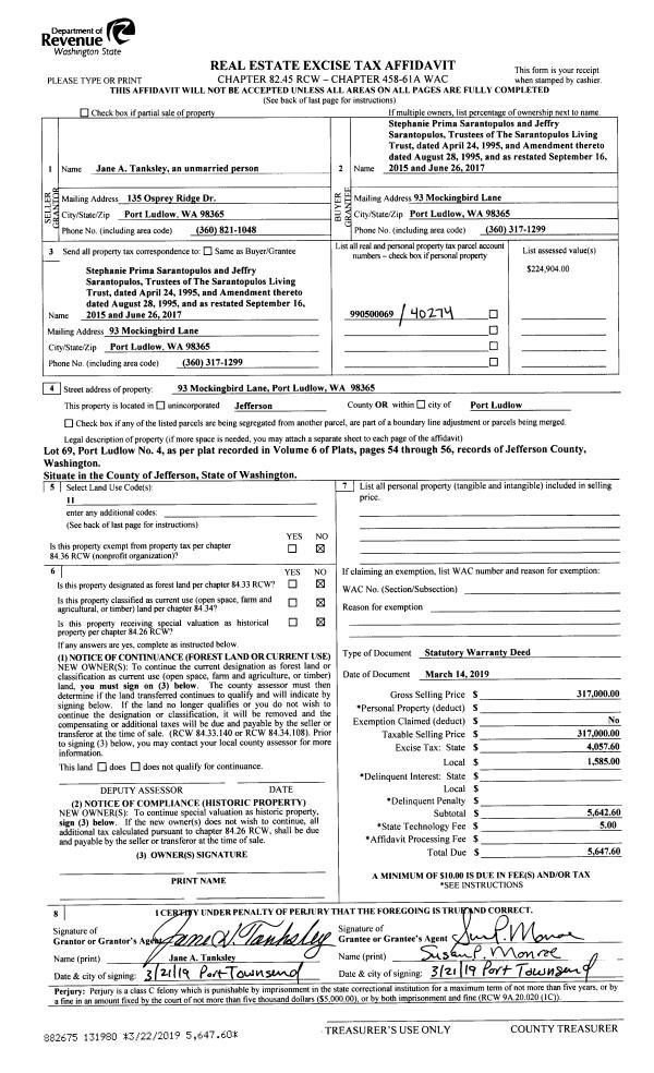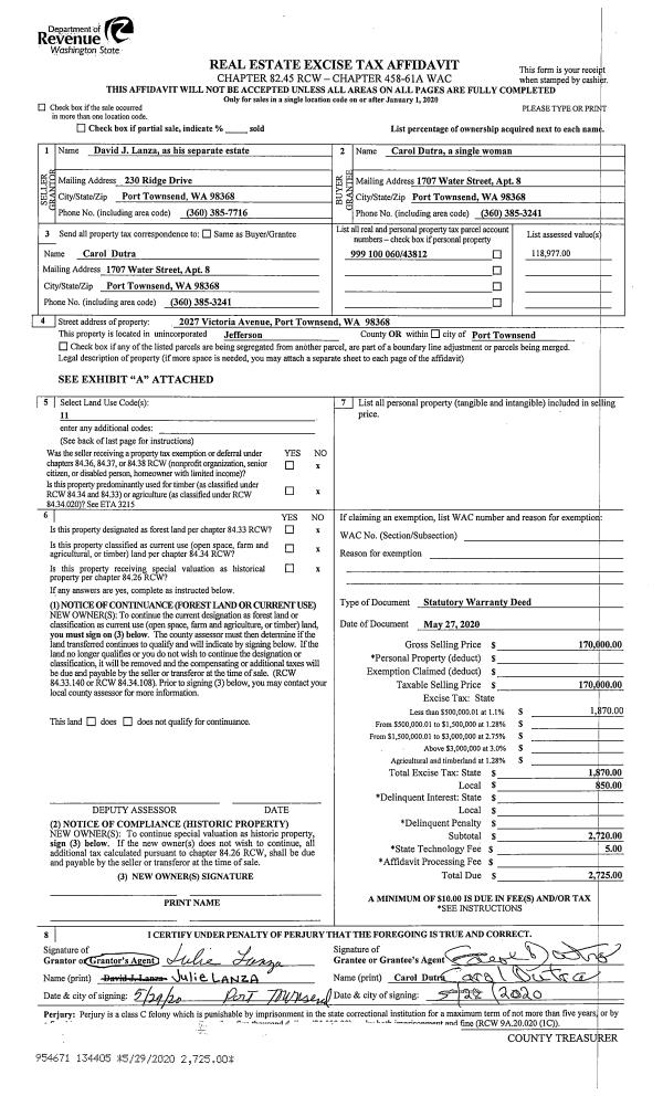 | 1 | 09/18/2020 | SWD | Statutory Warranty Deed | | | | | | 136111 | |