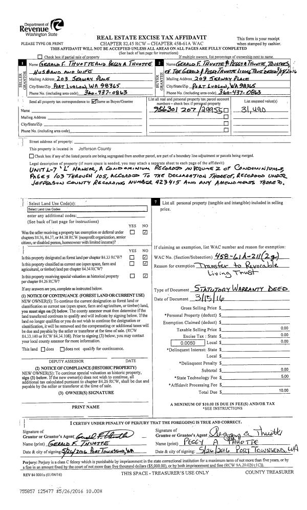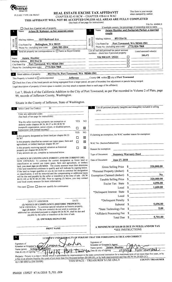| Mailing Address: | 196 25TH ST PORT TOWNSEND, WA 98368-6219 | % Ownership: | 100.0000000000% |