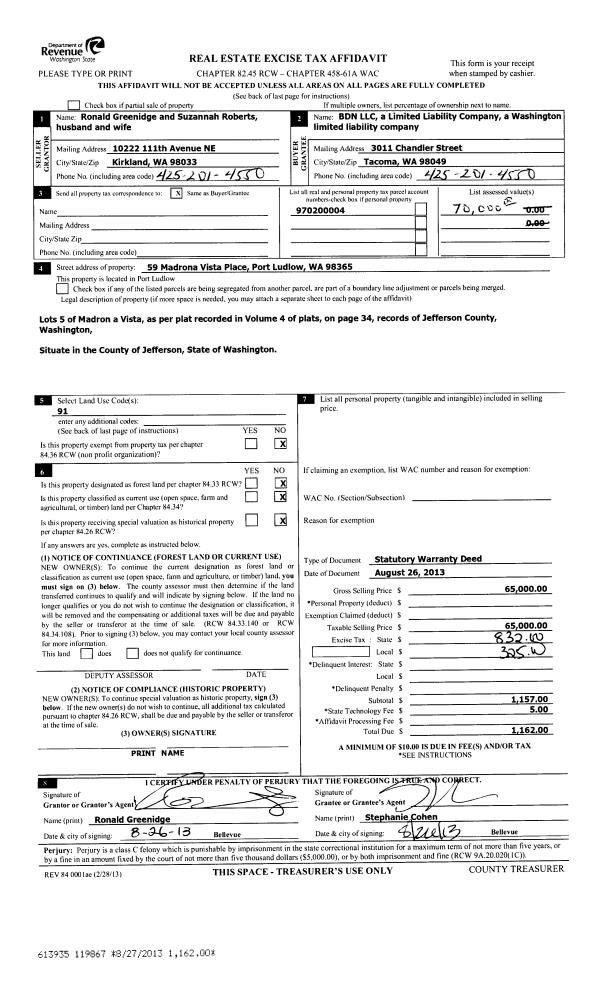 | Mailing Address: | 20 PEABODY WAY PORT LUDLOW, WA 98365-9709 | % Ownership: | 100.0000000000% |