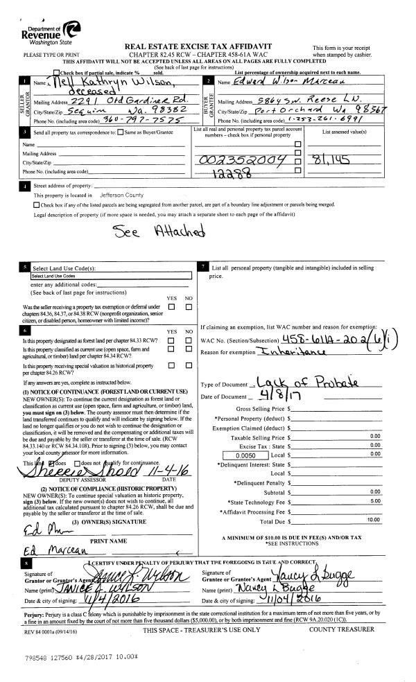 | 4 | 10/31/2003 | SWD | Statutory Warranty Deed | THOMSON, C/J & D/C MORGAN | IVERSON, DANIEL & JEAN/TRUSTEE | 0 | 0 | $35,000.00 | 98691 | 0 |