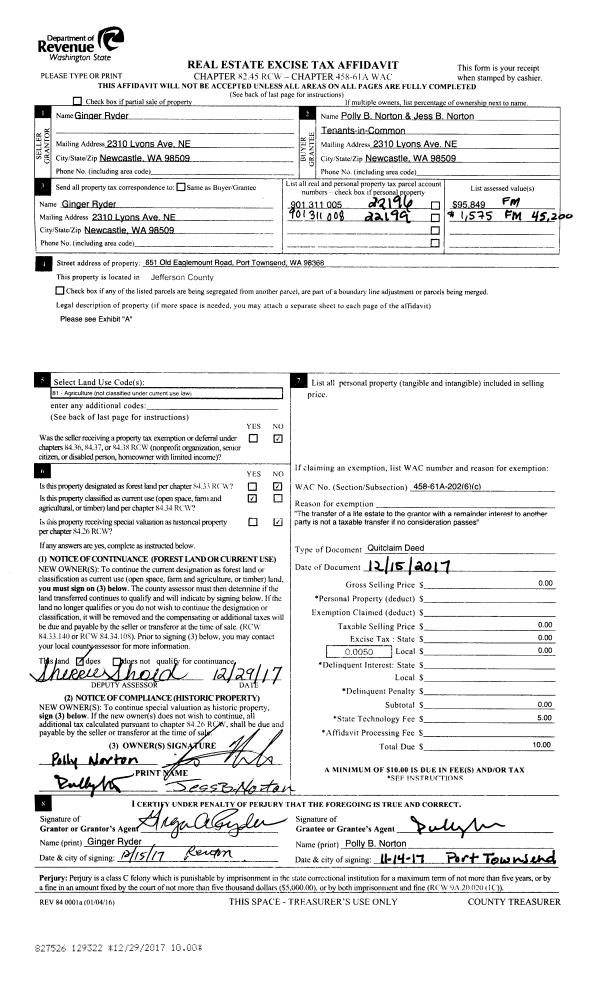 | Mailing Address: | 1571 THORNDYKE RD PORT LUDLOW, WA 98365-8221 | % Ownership: | 100.0000000000% |