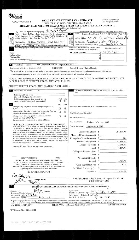 | 3 | 03/03/2017 | PRD | Personal Representatives Deed | DENNIS D ERNST | CHERYL ERNST | | | | 127336 | |