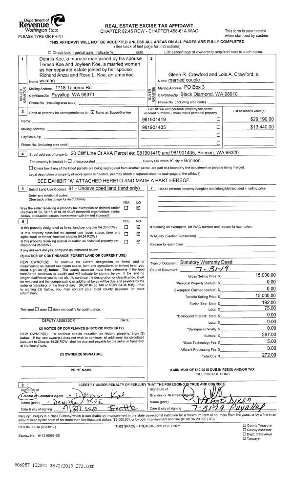 | 1 | 07/06/2020 | SWD | Statutory Warranty Deed | CHRIS K BERG | BRAYDEN GOODIER | | | $244,000.00 | 134622 | |