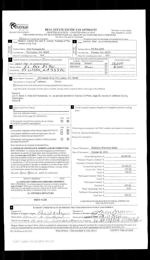 | 1 | 03/24/2021 | SWD | Statutory Warranty Deed | CPC LLC | EVELYN L HARDIN | | | $30,000.00 | 136383 | |