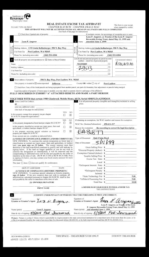 | Mailing Address: | 187 SEATTLE DRIVE PORT LUDLOW, WA 98365-9524 | % Ownership: | 100.0000000000% |