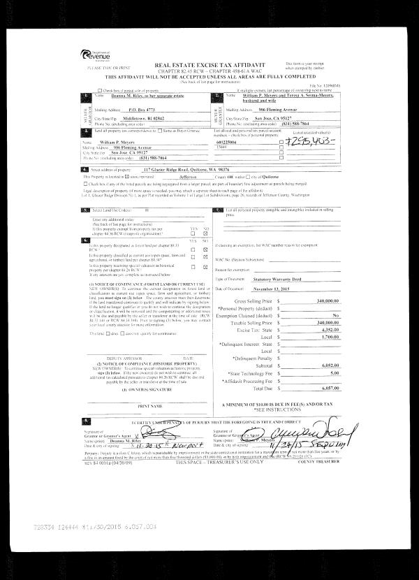| Mailing Address: | LINDA L LAWRENCE 1000 THORNDYKE RD PORT LUDLOW, WA 98365-9289 | % Ownership: | 100.0000000000% |