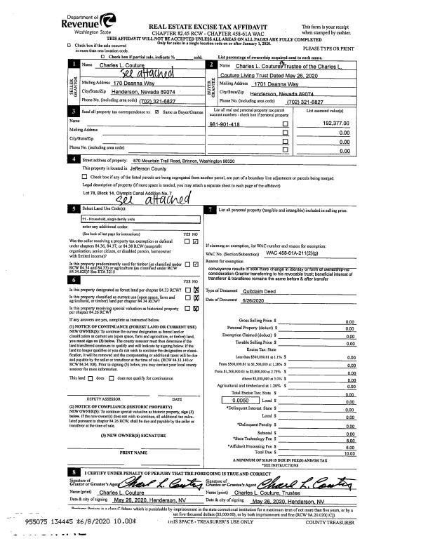 | 3 | 10/27/2010 | QCD | Quit Claim Deed | WRAY, JACK C | WRAY, JACK C/IN-CHA KIM | 0 | 0 | $0.00 | 115136 | 0 |
