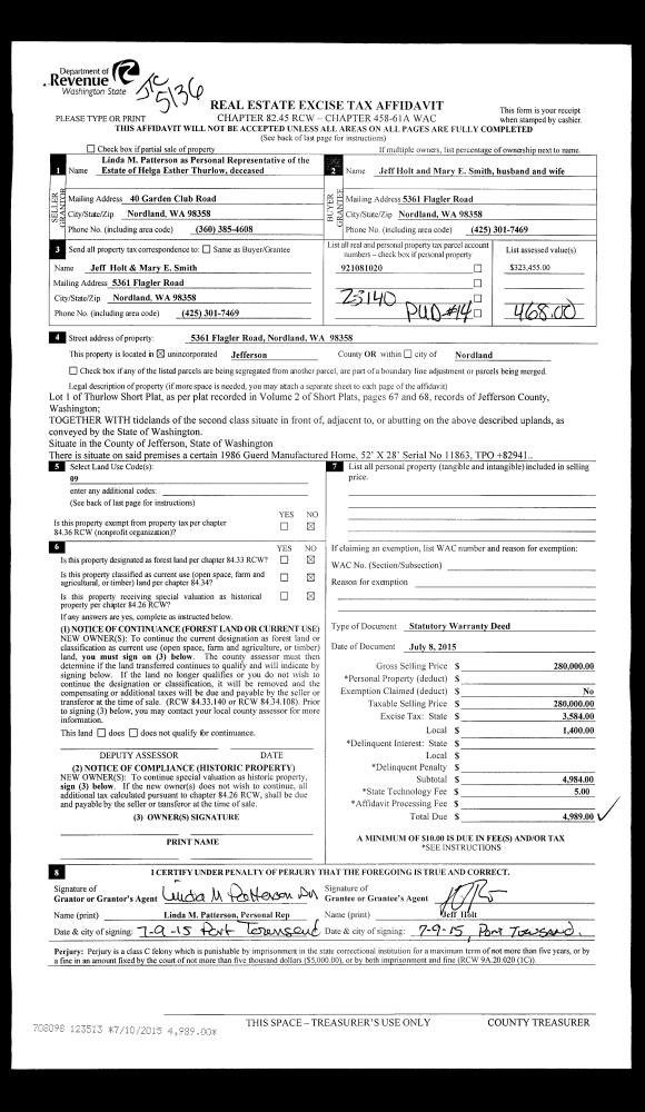 | Mailing Address: | 12 PAR 4 CT PORT LUDLOW, WA 98365-9582 | % Ownership: | 100.0000000000% |