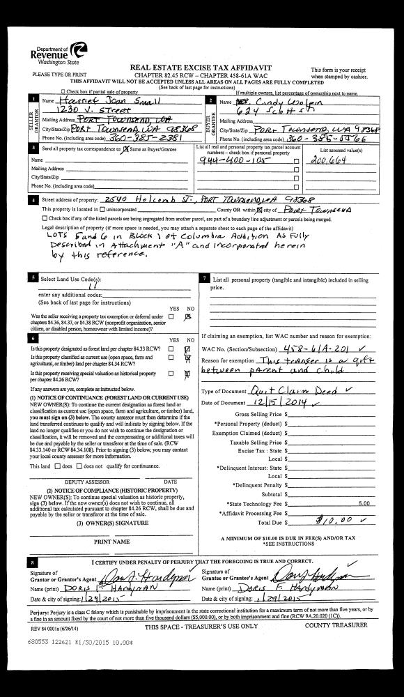 | 2 | 10/04/2011 | QCD | Quit Claim Deed | SMITH, SUSANNA L AKA STEP | STEPHENS II, RICHARD J | 0 | 0 | $0.00 | 116666 | 0 |
