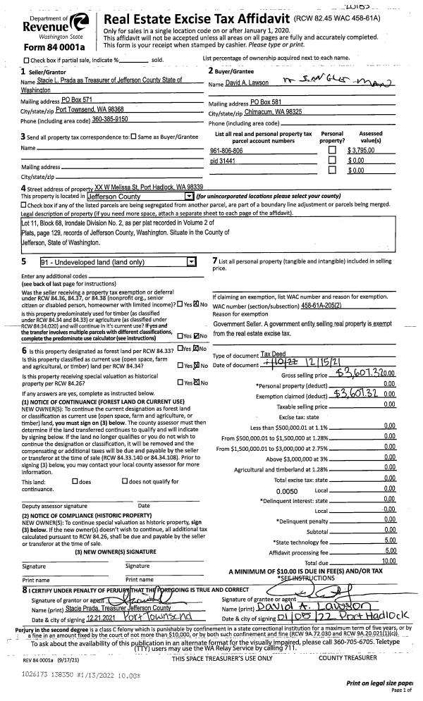 | 1 | 07/12/2023 | SWD | Statutory Warranty Deed | STEWART FAMILY 2002 REVOCABLE TRUST | CARL C HINK | | | $570,000.00 | 141245 | |