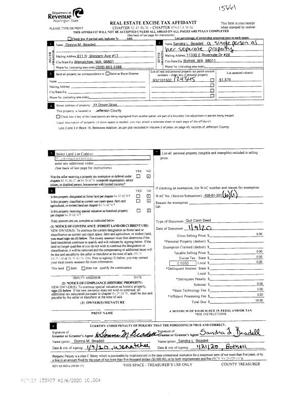 | 3 | 06/08/2020 | SWD | Statutory Warranty Deed | BOZANICH TRUST AGREEMENT | DEAN MCINNES | | | $388,500.00 | 134490 | |