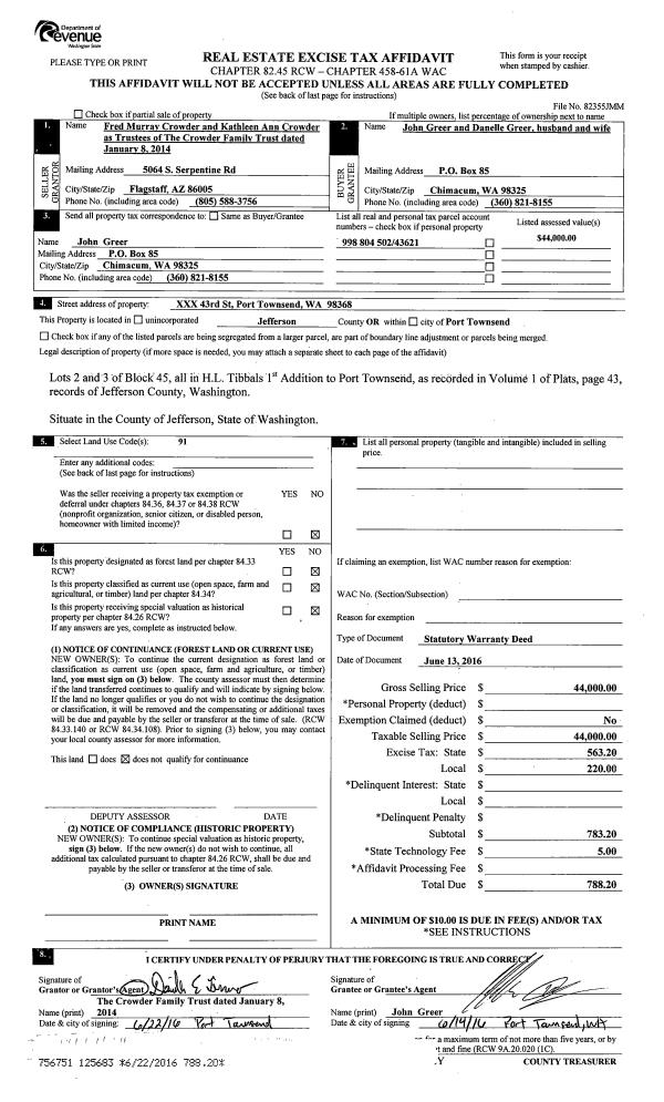 | Mailing Address: | 929 22ND ST PORT TOWNSEND, WA 98368-7708 | % Ownership: | 100.0000000000% |