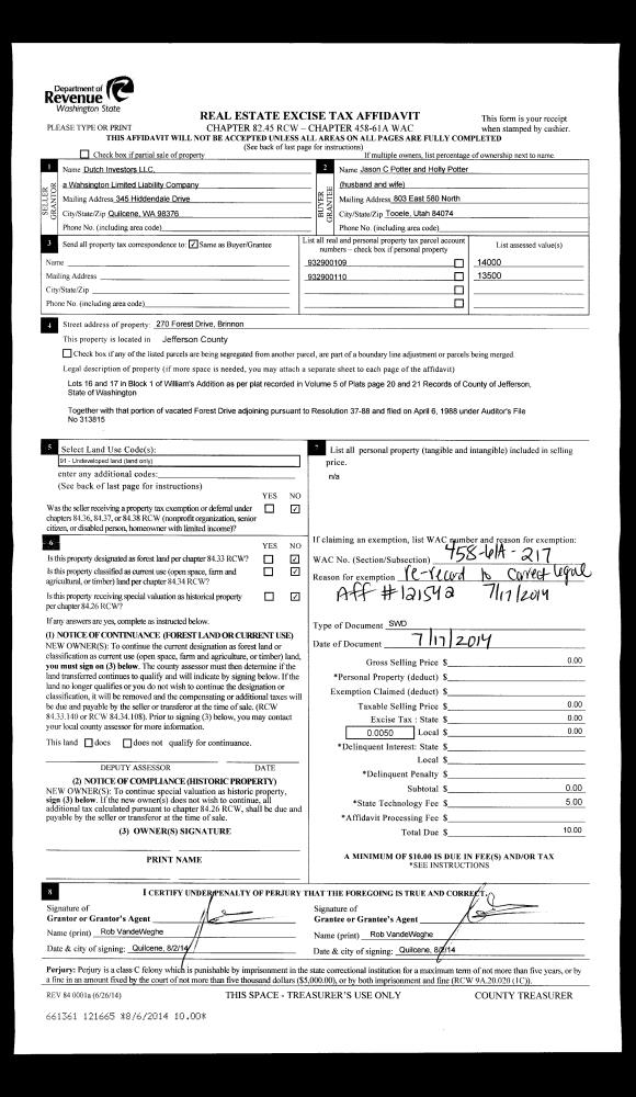 | Mailing Address: | 1033 LAWRENCE ST PORT TOWNSEND, WA 98368-6523 | % Ownership: | 100.0000000000% |