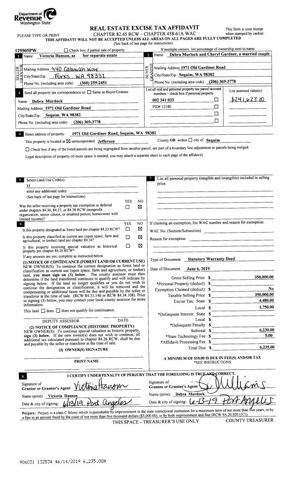 | Mailing Address: | 2247 COOK AVE PORT TOWNSEND, WA 98368-1002 | % Ownership: | 100.0000000000% |