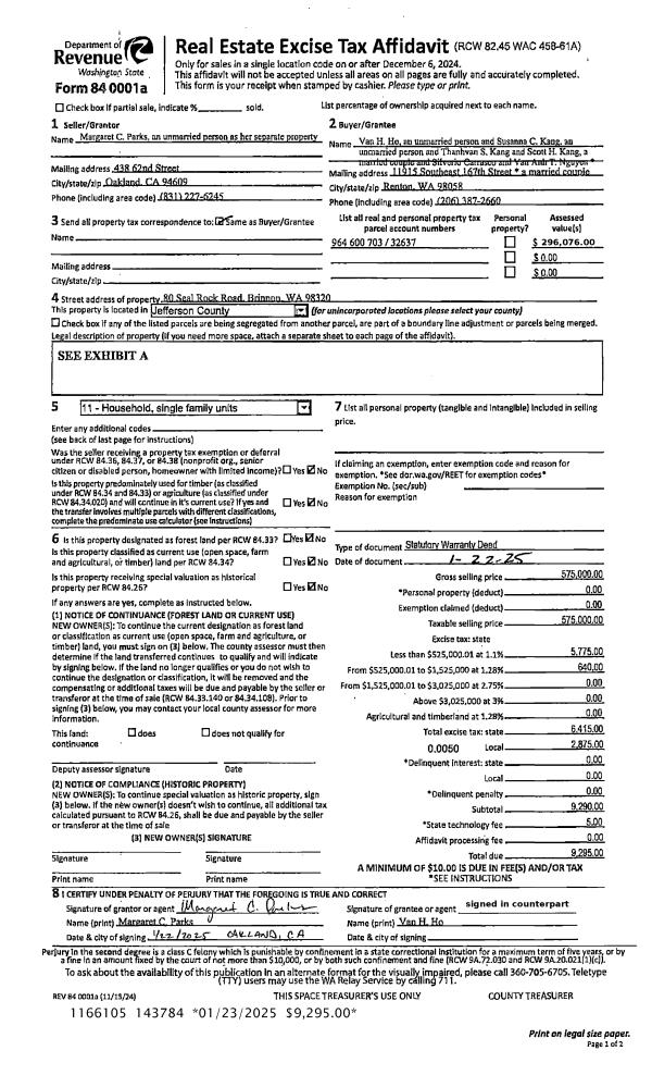 | Mailing Address: | SHANNAN C KIRCHNER HOLMES 4867 BELL ST PORT TOWNSEND, WA 98368-1921 | % Ownership: | 100.0000000000% |