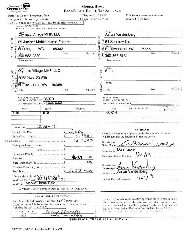 | Mailing Address: | 2202 E CAROLINE ST PORT TOWNSEND, WA 98368 | % Ownership: | 100.0000000000% |