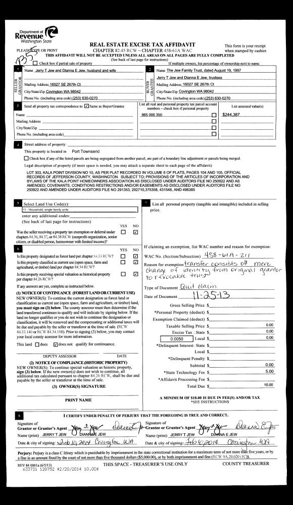 | Mailing Address: | 5004 MAGNOLIA ST PORT TOWNSEND, WA 98368-1934 | % Ownership: | 100.0000000000% |