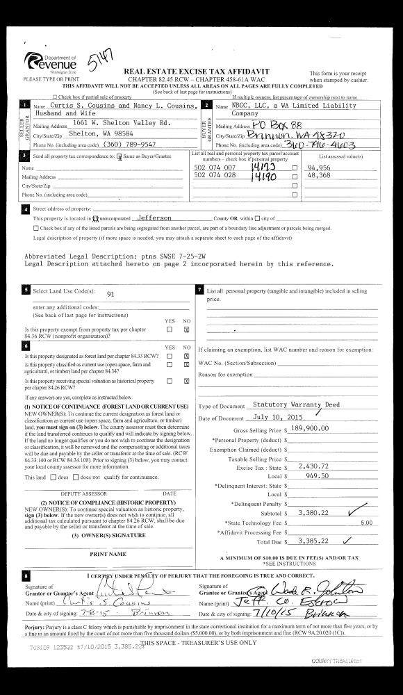 | 2 | 12/24/2015 | SWD | Statutory Warranty Deed | WILLIAM H LOECHEL TRSTEE | ALEXANDRA & PETER TERHORST | | | $305,000.00 | 124631 | |
