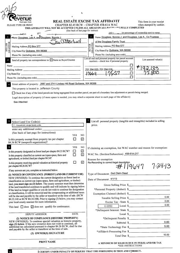 | 1 | 10/02/2014 | SWD | Statutory Warranty Deed | RODNEY G HEIKES | CITY OF PORT TOWNSEND | | | $24,900.00 | 122060 | |