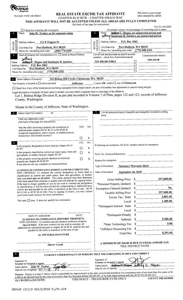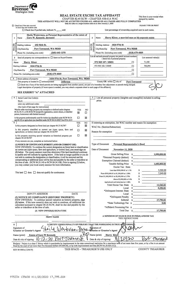 | Mailing Address: | 2740 PEARY AVE PORT TOWNSEND, WA 98368-1030 | % Ownership: | 100.0000000000% |