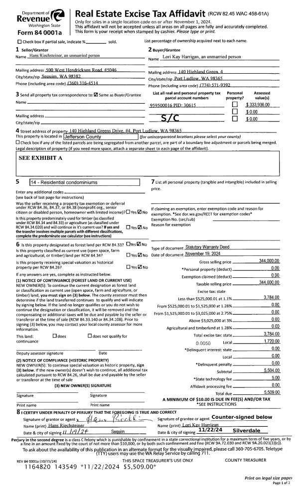 | Mailing Address: | 4440 ELMIRA ST PORT TOWNSEND, WA 98368-8826 | % Ownership: | 100.0000000000% |