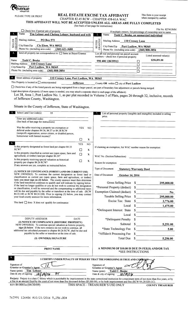 | Mailing Address: | ALICE M TIBBALS 200 BEACH DR NORDLAND, WA 98358-9603 | % Ownership: | 100.0000000000% |