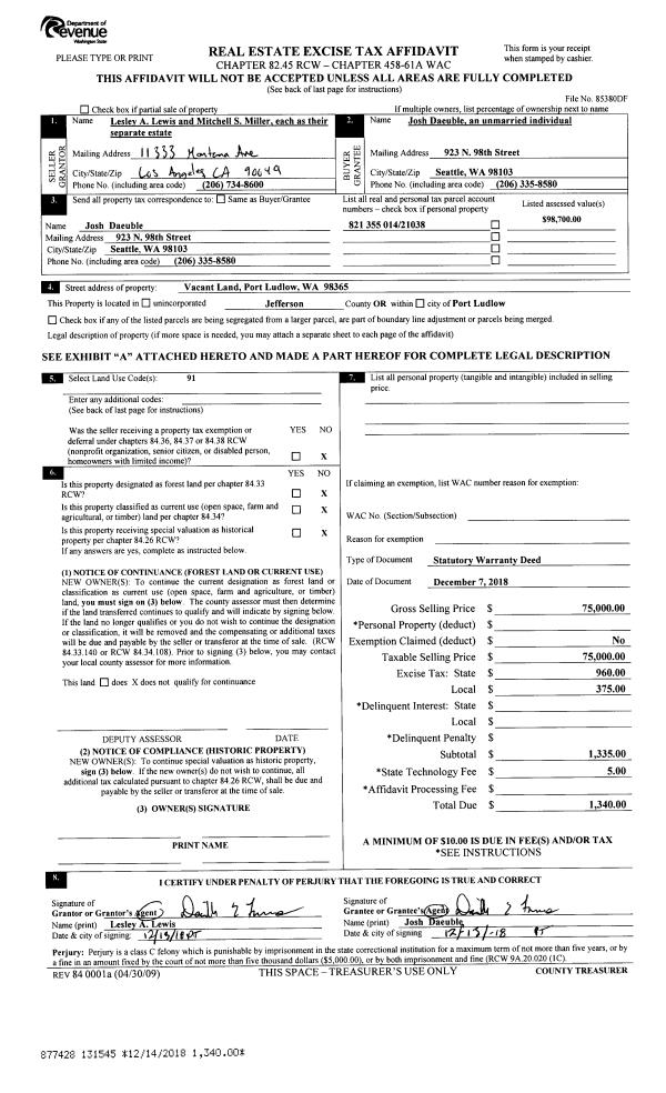 | 3 | 02/12/2001 | SWD | Statutory Warranty Deed | ROSSELET, HELEN R | ELLIS, RALPH H/GLADYS M | 0 | 0 | $210,000.00 | 91617 | 0 |