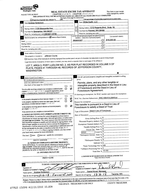 | 4 | 09/29/1994 | SWD | Statutory Warranty Deed | WINTER, KENNETH R/DOROTHY | PIERCE, BILL J/ELINOR B | 0 | 0 | $224,000.00 | 75321 | 0 |