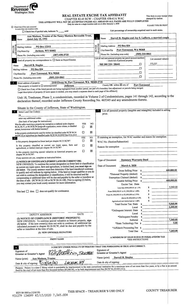 | Mailing Address: | SIRENA MC KINLEY 82 GARTEN RD PORT LUDLOW, WA 98365-9514 | % Ownership: | 100.0000000000% |