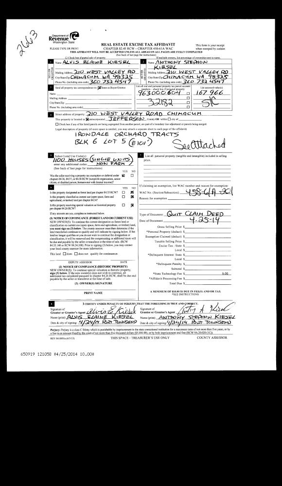 | Mailing Address: | 21 LEONES CT PORT LUDLOW, WA 98365-8265 | % Ownership: | 100.0000000000% |