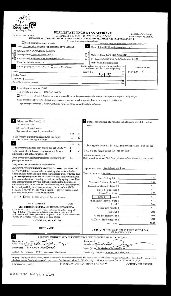 | Mailing Address: | 8393 FLAGLER RD NORDLAND, WA 98358-9525 | % Ownership: | 100.0000000000% |