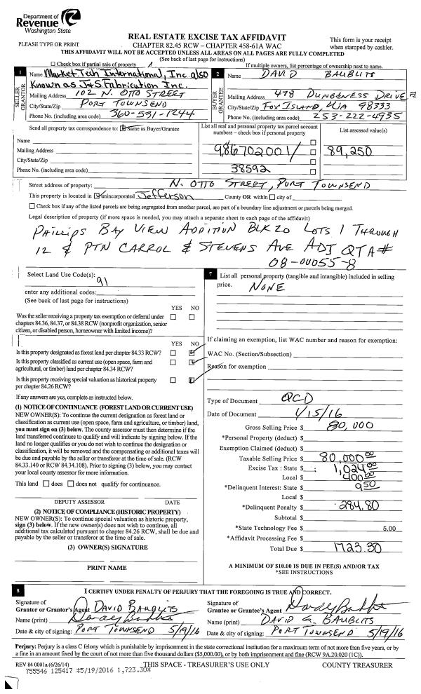 | Mailing Address: | KIMBERLY E KINSER 8234 FLAGLER NORDLAND, WA 98358-9524 | % Ownership: | 100.0000000000% |