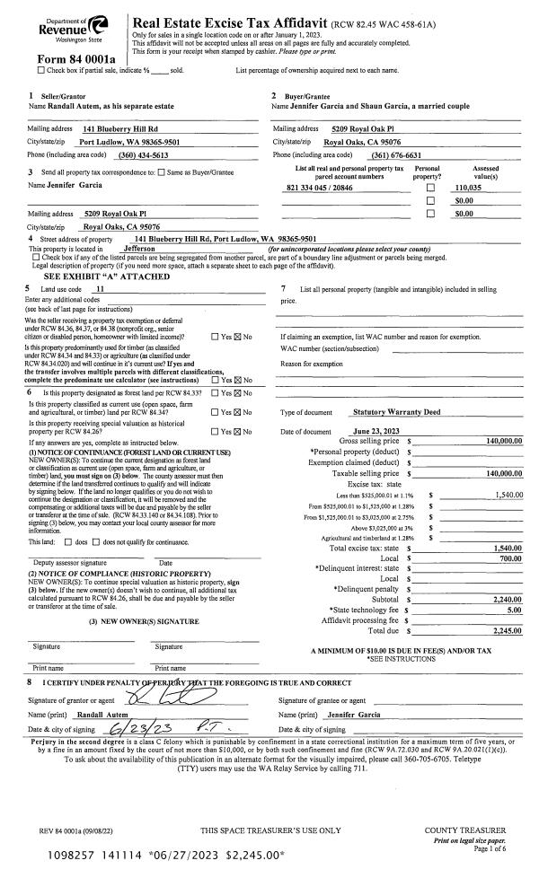 | 1 | 11/14/2023 | SWD | Statutory Warranty Deed | DALE & CANDACE TANGEMAN | GEORGE C MCLANE | | | $500,000.00 | 141906 | |