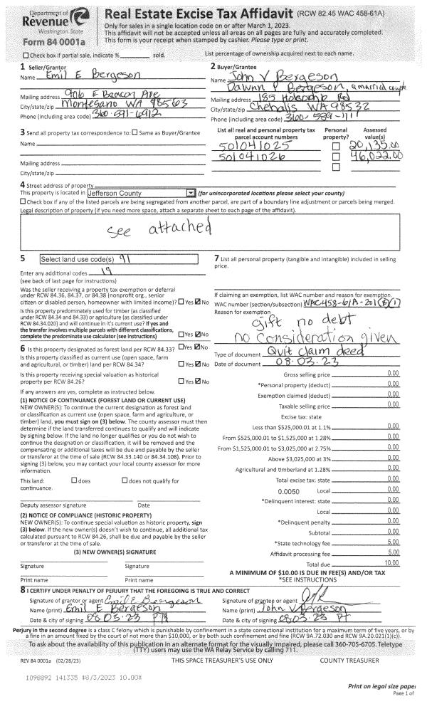 | 1 | 11/14/2023 | SWD | Statutory Warranty Deed | DALE & CANDACE TANGEMAN | GEORGE C MCLANE | | | $500,000.00 | 141906 | |