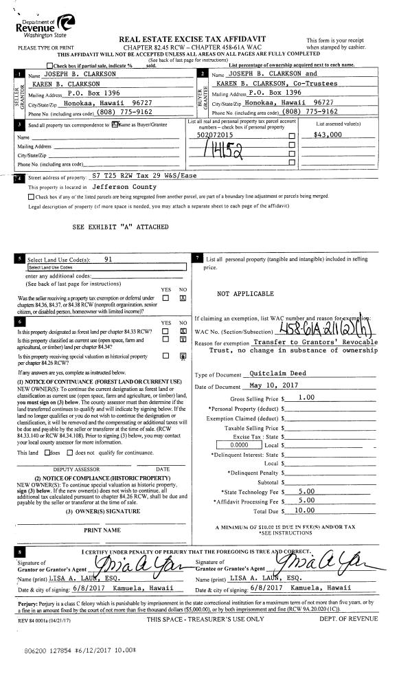 | 3 | 05/02/2018 | QCD | Quit Claim Deed | | | | | | 130381 | |