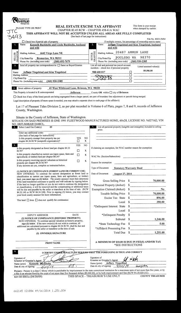 | 6 | 05/05/2006 | SWD | Statutory Warranty Deed | KARNOFSKI, JEROME & MARIL | SINCLAIR, RICHARD & DORIS H | | | $20,000.00 | 106627 | 0 |