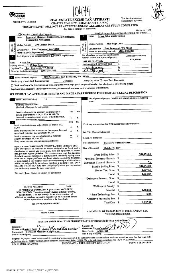 | Mailing Address: | 2775 THORNDYKE RD PORT LUDLOW, WA 98365 | % Ownership: | 100.0000000000% |